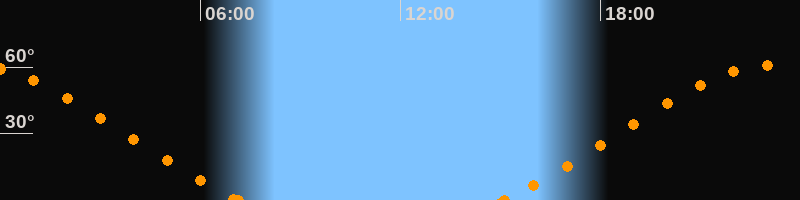 Höchster Stand (Kulmination)23:06 Uhr (h = 60.9°)