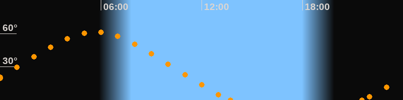 Höchster Stand (Kulmination)05:39 Uhr (h = 61.5°)