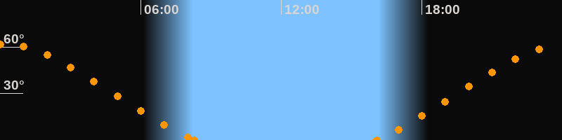 Höchster Stand (Kulmination)00:08 Uhr (h = 61.7°)