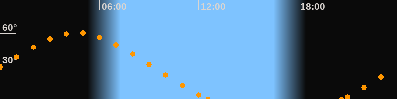 Höchster Stand (Kulmination)04:38 Uhr (h = 60.5°)