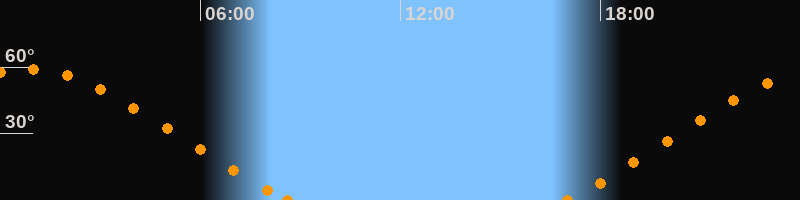 Höchster Stand (Kulmination)00:46 Uhr (h = 59°)