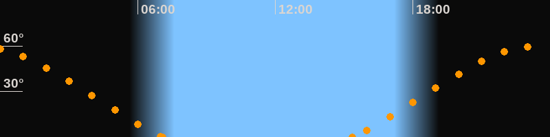 Höchster Stand (Kulmination)23:11 Uhr (h = 59.5°)