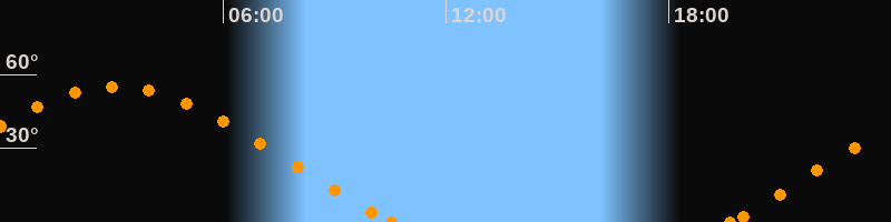 Aufgang19:39 Uhr im Nordosten (αAz = 63.8°)