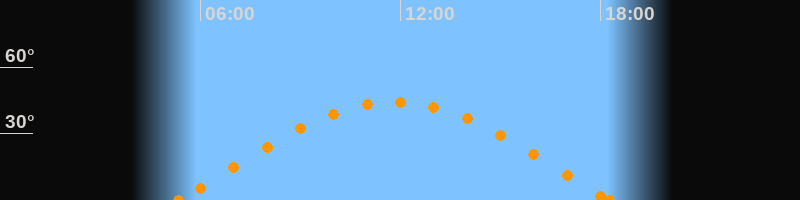 Höchster Stand (Kulmination)11:48 Uhr (h = 44.3°)