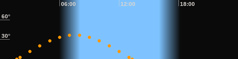 Höchster Stand (Kulmination)07:30 Uhr (h = 36.7°)
