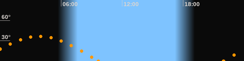 Höchster Stand (Kulmination)03:50 Uhr (h = 36.5°)