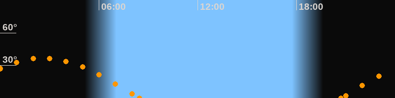Höchster Stand (Kulmination)02:37 Uhr (h = 36.9°)