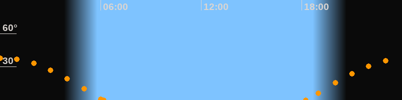 Höchster Stand (Kulmination)00:10 Uhr (h = 37.8°)