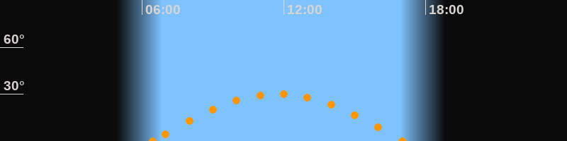 Höchster Stand (Kulmination)11:45 Uhr (h = 30.2°)