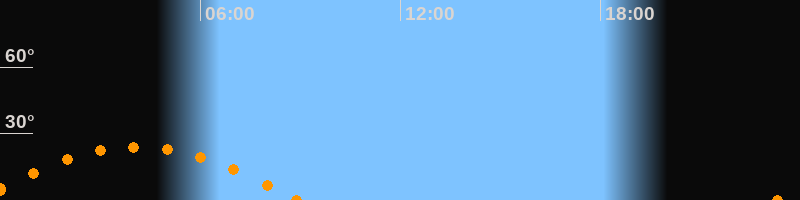 Aufgang23:18 Uhr im Südosten (αAz = 113.9°)