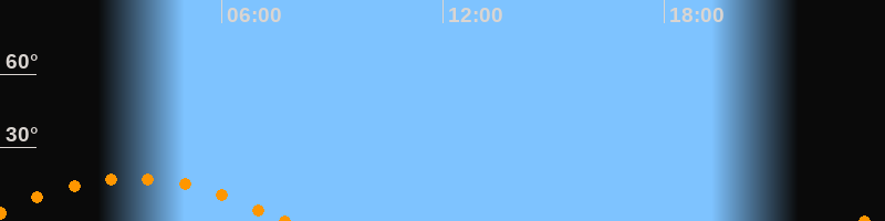 Aufgang23:25 Uhr im Südosten (αAz = 125.1°)