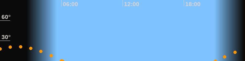 Aufgang21:06 Uhr im Südosten (αAz = 118.6°)