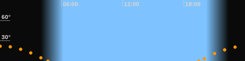 Aufgang19:28 Uhr im Südosten (αAz = 117.1°)