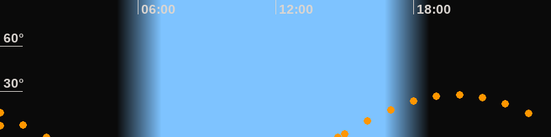 Höchster Stand (Kulmination)19:49 Uhr (h = 28.2°)
