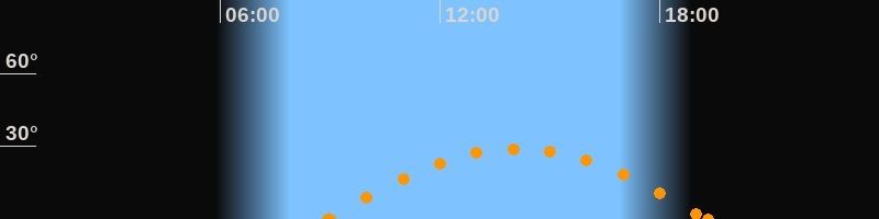Höchster Stand (Kulmination)14:08 Uhr (h = 29°)