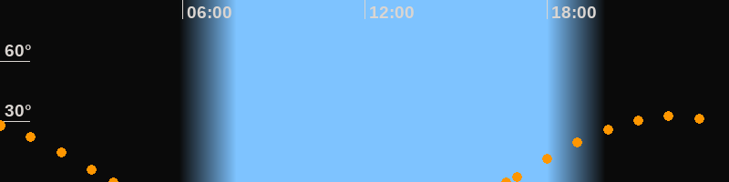 Höchster Stand (Kulmination)22:09 Uhr (h = 32.7°)