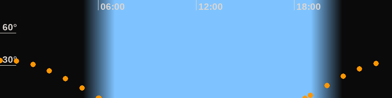 Höchster Stand (Kulmination)00:19 Uhr (h = 34.7°)