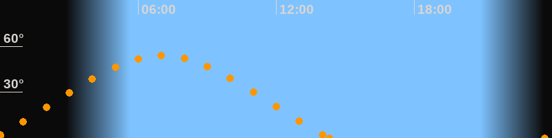 Höchster Stand (Kulmination)07:02 Uhr (h = 53.8°)
