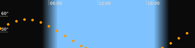 Höchster Stand (Kulmination)03:15 Uhr (h = 53.6°)