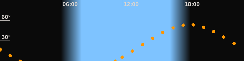 Höchster Stand (Kulmination)18:35 Uhr (h = 54°)