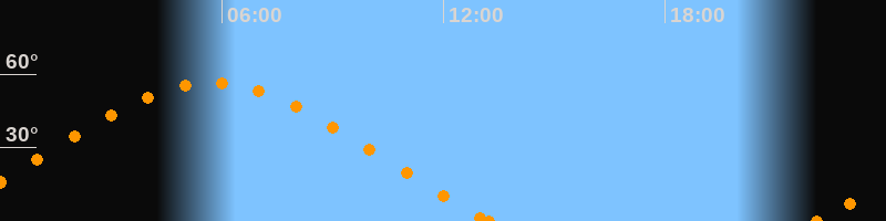 Höchster Stand (Kulmination)05:42 Uhr (h = 56.3°)