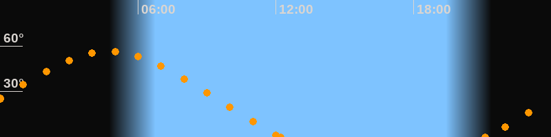 Höchster Stand (Kulmination)04:43 Uhr (h = 56.3°)