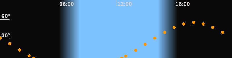 Höchster Stand (Kulmination)20:00 Uhr (h = 55.3°)