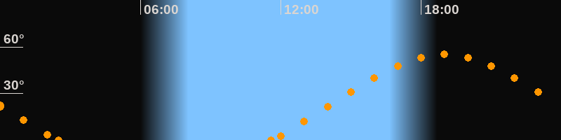 Höchster Stand (Kulmination)19:00 Uhr (h = 55.2°)