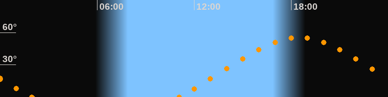 Höchster Stand (Kulmination)18:29 Uhr (h = 55.2°)