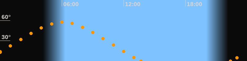 Höchster Stand (Kulmination)06:04 Uhr (h = 57.5°)