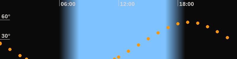 Höchster Stand (Kulmination)19:06 Uhr (h = 56.5°)