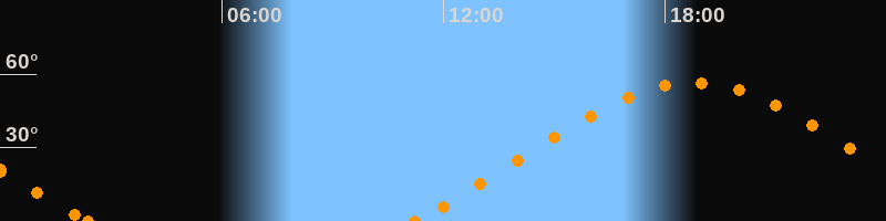 Höchster Stand (Kulmination)18:46 Uhr (h = 56.5°)