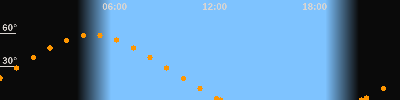 Höchster Stand (Kulmination)05:30 Uhr (h = 58.5°)