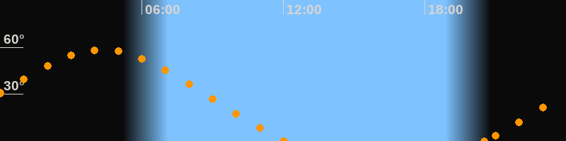 Höchster Stand (Kulmination)04:19 Uhr (h = 58.5°)