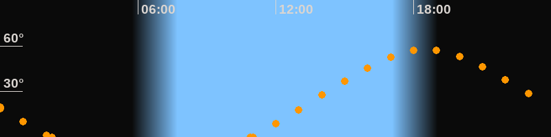 Höchster Stand (Kulmination)18:32 Uhr (h = 57.6°)