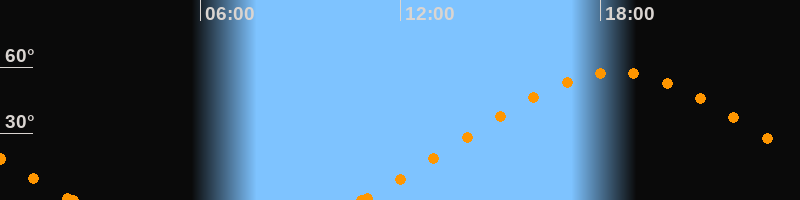 Höchster Stand (Kulmination)18:28 Uhr (h = 57.6°)