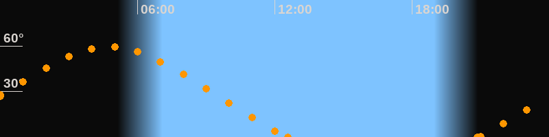 Höchster Stand (Kulmination)04:45 Uhr (h = 59.5°)