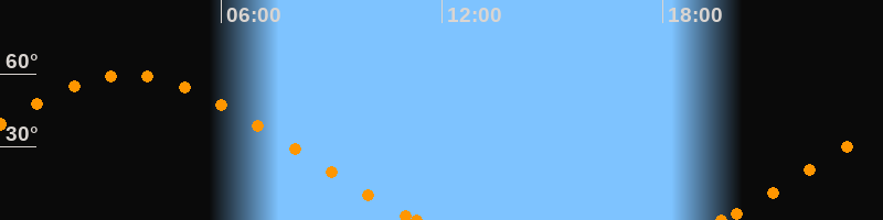 Höchster Stand (Kulmination)03:28 Uhr (h = 59.4°)