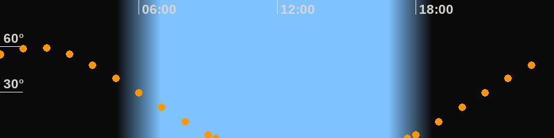 Höchster Stand (Kulmination)01:31 Uhr (h = 59.3°)