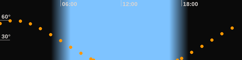 Höchster Stand (Kulmination)01:27 Uhr (h = 59.3°)