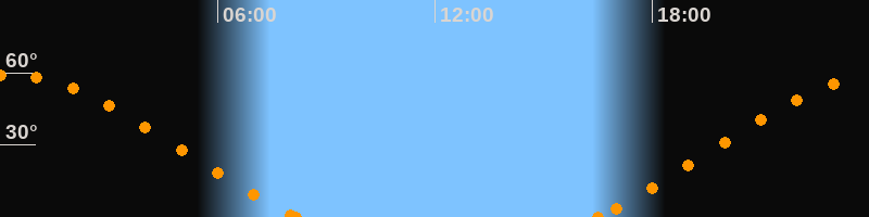 Höchster Stand (Kulmination)00:18 Uhr (h = 59.1°)