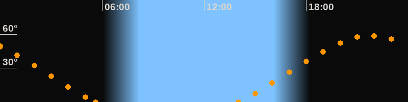Höchster Stand (Kulmination)21:46 Uhr (h = 58.8°)