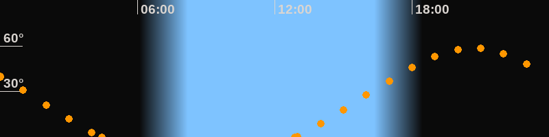 Höchster Stand (Kulmination)20:38 Uhr (h = 58.7°)