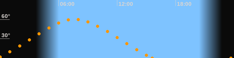 Höchster Stand (Kulmination)07:40 Uhr (h = 60.3°)