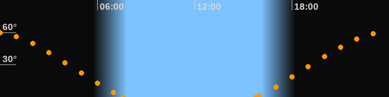 Höchster Stand (Kulmination)23:39 Uhr (h = 59.9°)