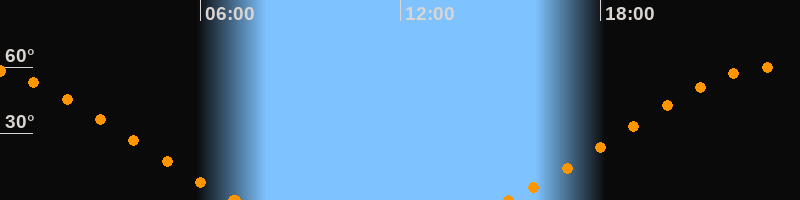 Höchster Stand (Kulmination)23:07 Uhr (h = 59.9°)