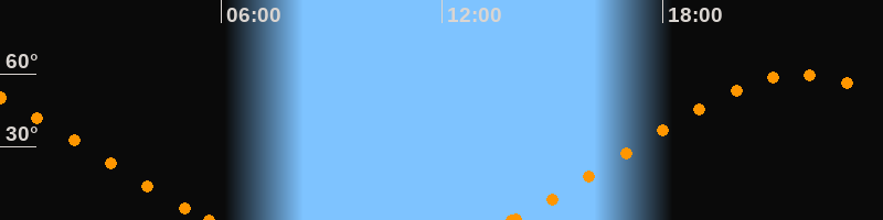 Höchster Stand (Kulmination)21:45 Uhr (h = 59.7°)