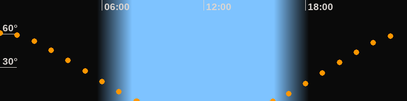 Höchster Stand (Kulmination)00:03 Uhr (h = 60.8°)