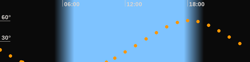 Höchster Stand (Kulmination)18:09 Uhr (h = 60.5°)
