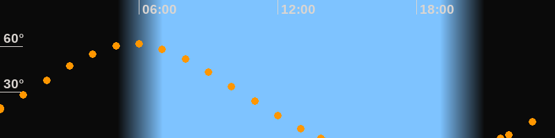 Höchster Stand (Kulmination)05:46 Uhr (h = 61.7°)